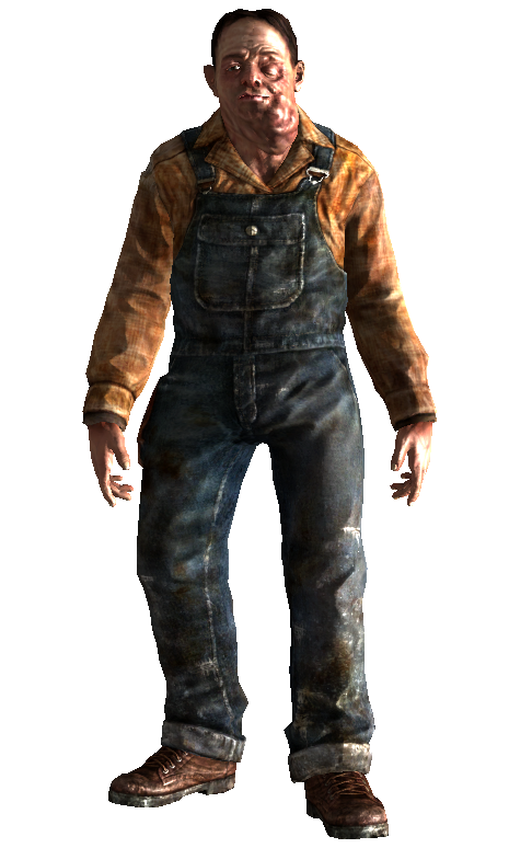 Brawlers are large, but not as large as trackers and bruisers. They wear clothes that actually fit them, which is overalls and an orange shirt underneath. It is safe to say that brawlers are the most "normal" looking of the swampfolk. They are tougher than scrappers, but somewhat weaker than creepers, and are roughly on par with a super mutant brute in terms of durability and skill.