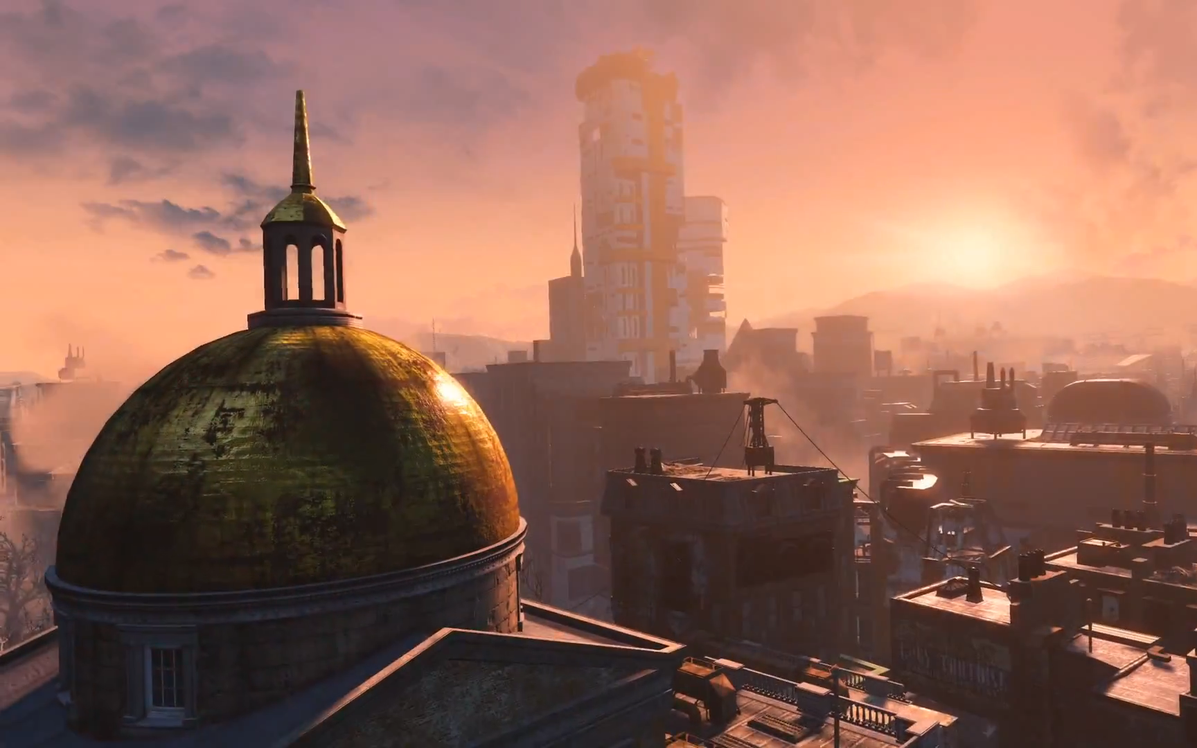 The capital of the Commonwealth of Massachusetts and one of the most densely urbanized areas on the eastern seaboard. It is a mix of centuries-old colonial architecture, civic and public buildings from the heyday of the United States, and expensive, high technology skyscrapers from its latter days. A vast network of elevated highways and monorails connected the city to the towns and districts beyond. Most of the city is abandoned and lies in ruins, although extensive reinforcement work, redundant draining systems, and excellent engineering prevented it from being reclaimed by the ocean, despite the near-constant fighting going on throughout the city. It is also home to three oases of peace: Diamond City, Bunker Hill and Goodneighbor, which also act as pillars of the region's economy.