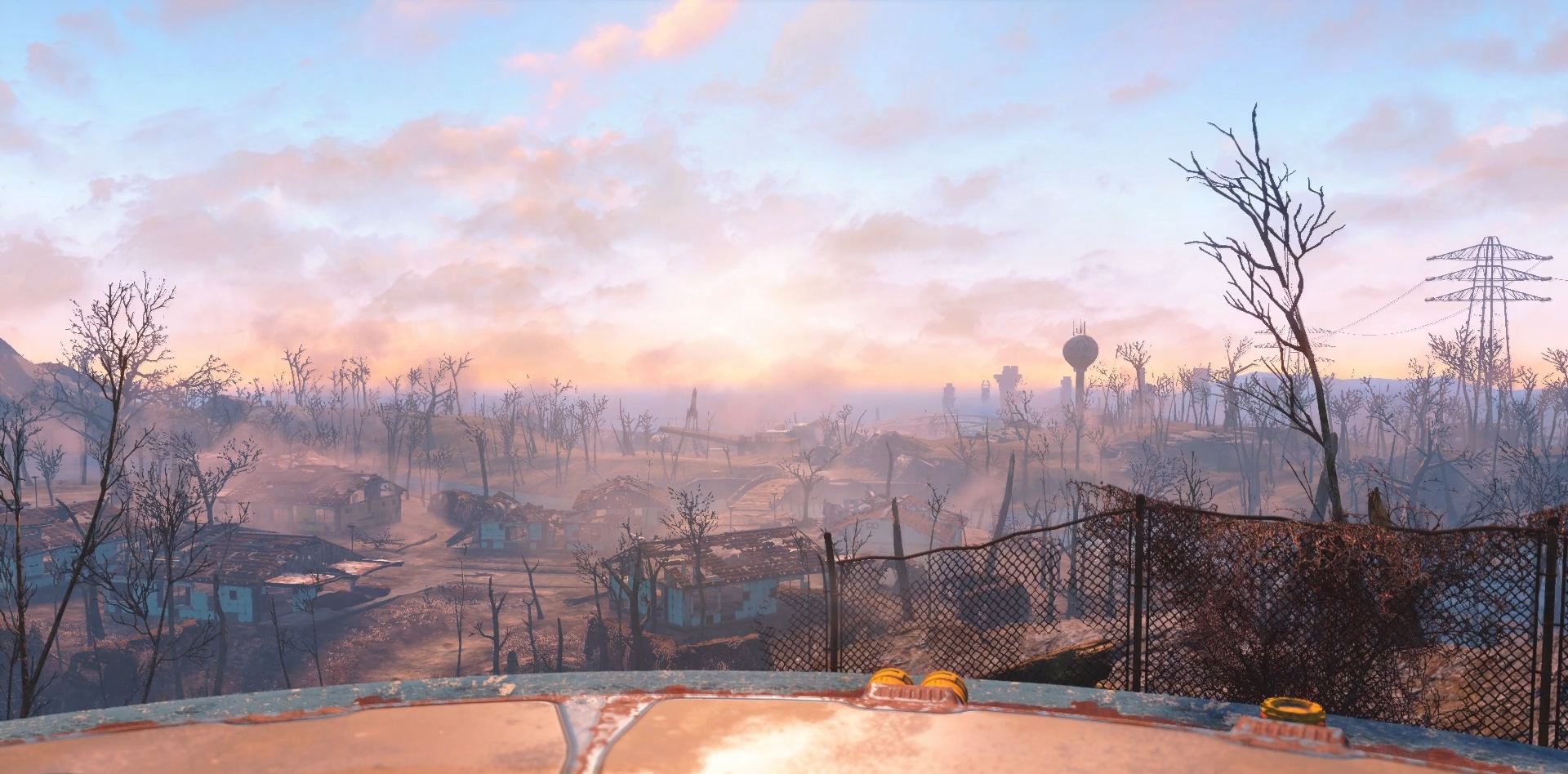 Once a burgeoning landscape, this region still has the remains of suburbs and cities alike. Among the ruins are several settlements.[Non-game 5] Among them are Abernathy farm, Drumlin Diner and Tenpines Bluff. Due to the high traffic and relative safety, thanks to relatively low background radiation compared to the rest of the Commonwealth, this region is home to several raider gangs who prey on the caravan traffic.