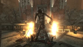 While the ostensible goal of the Scourge was largely a success in almost completely ridding the Pitt of the human filth that plagued its streets, it was not without cost, one that would have significant ramifications for the Pitt's future. At one point when the Brotherhood pushed into the city's steelyard, an explosion destroyed much of a steel mill and also ended up burying an initiate named Ishmael Ashur under heavy debris.[8] Believing him dead, his brothers-in-arms abandoned searching for Ashur and left him in the rubble, a choice that he eventually understood and for which he did not blame them.