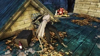 - On the eastern edge of the roof, near two skeletons embracing.