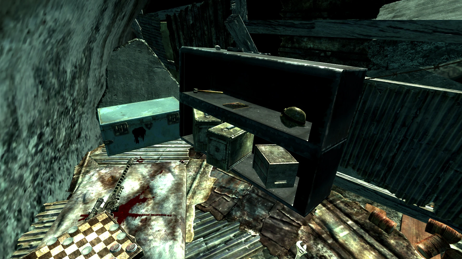 On top of a ridge to the north-northeast, directly northeast of the barn with the scavenger's key, on the ground beside a dead mercenary and a dead wasteland settler with bloatflies buzzing around them. |