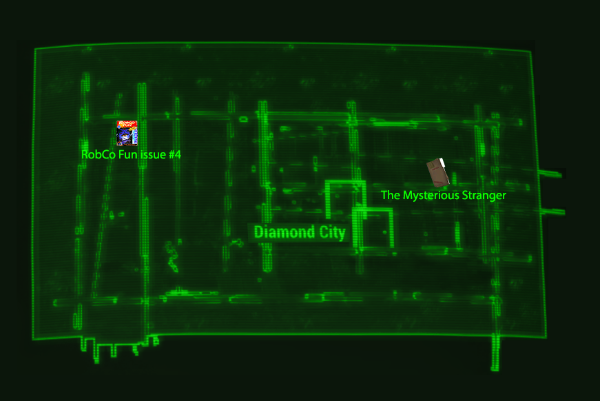 Under the downstairs bed is a case file detailing notes and sightings Valentine has collected while investigating the Mysterious Stranger. These go back at least as far as the events of Fallout.