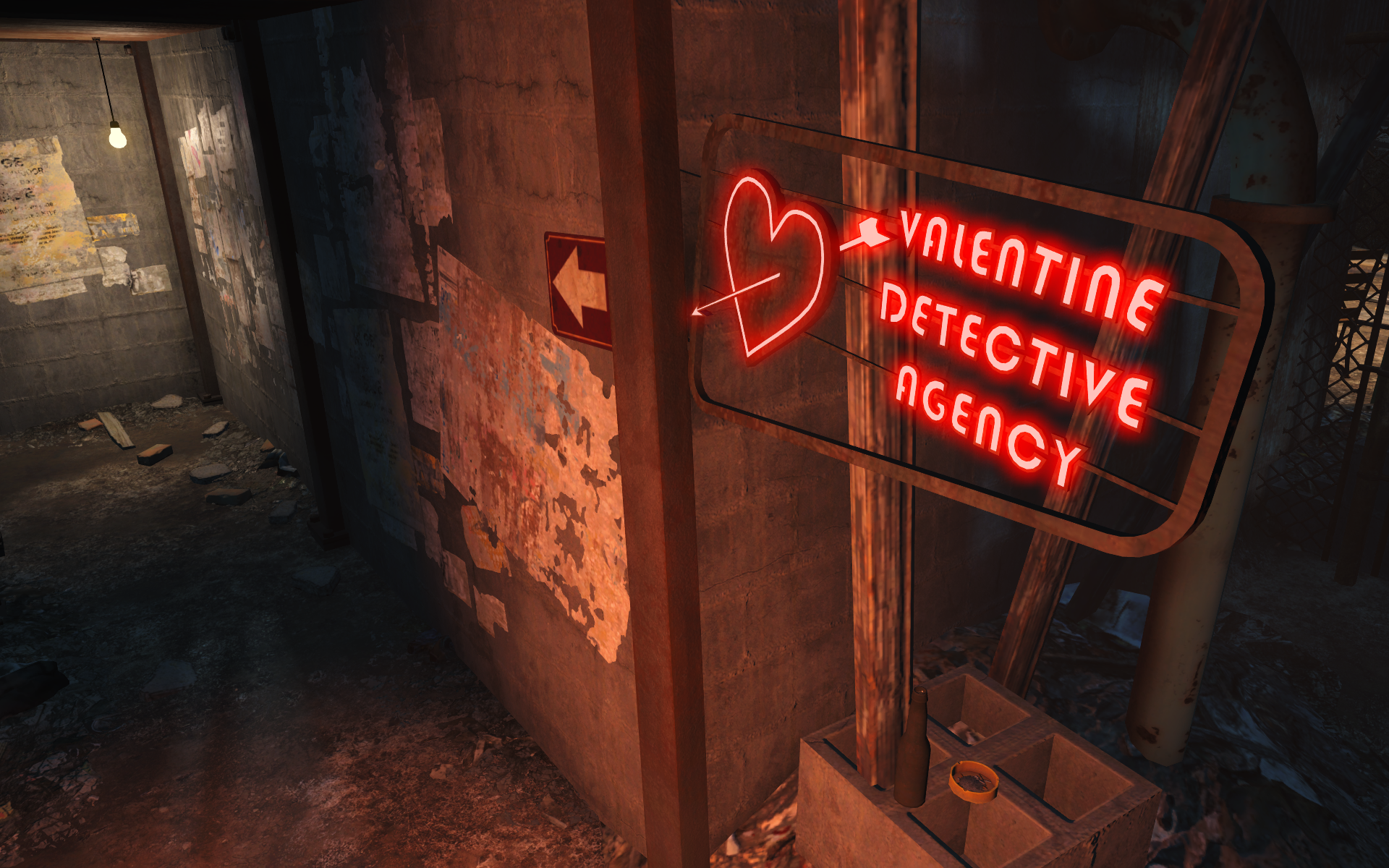 Valentine Detective Agency is an unmarked location in Diamond City in Fallout 4. It is owned and operated by Nick Valentine, who uses the office as the base for his private investigation business together with his secretary Ellie Perkins.