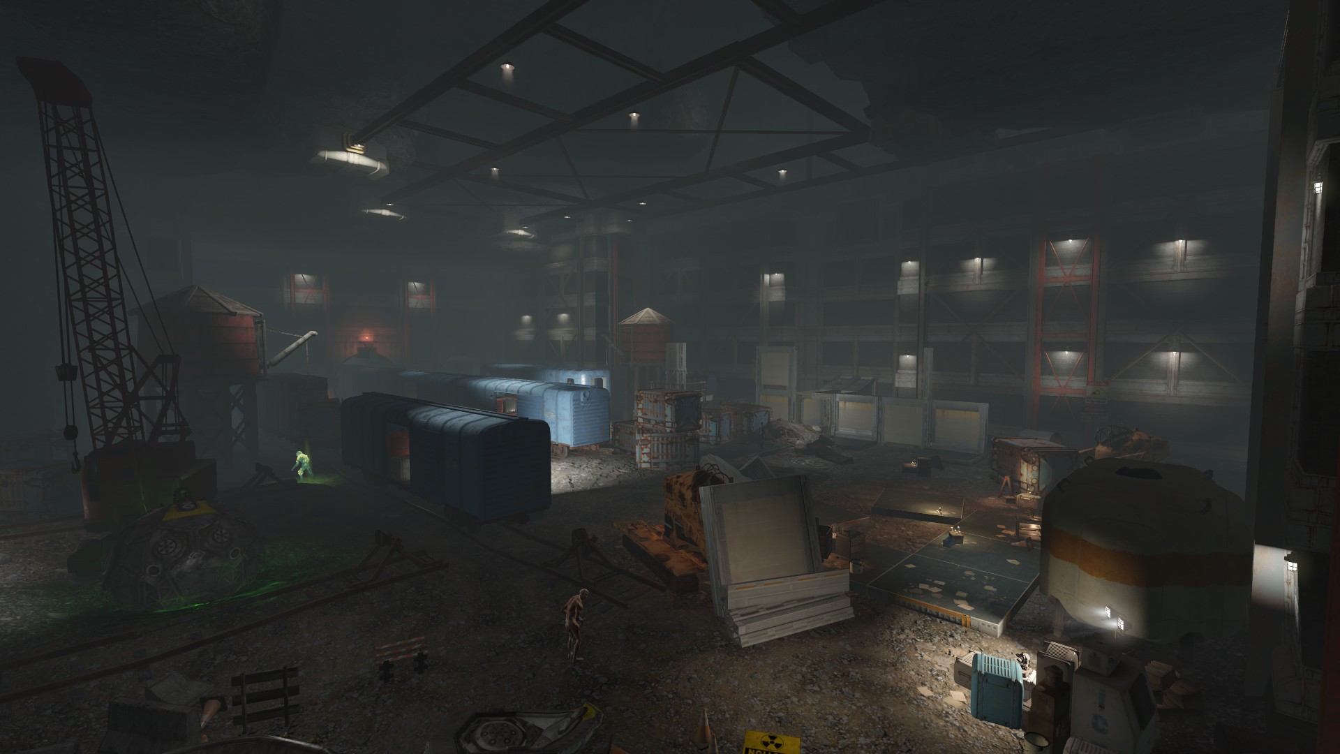 Vault 88's primary construction site, demonstrating typical late model construction efforts: Railway deliveries, heavy equipment, prefabricated elements, and large caverns shored up to withstand intense construction.