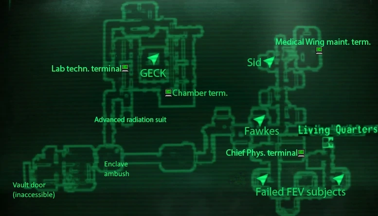 (Fawkes' dialogue) - ↑ Lone Wanderer: "How do you know the layout of this place?"