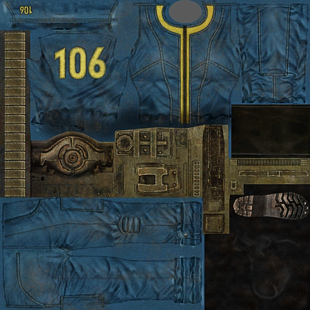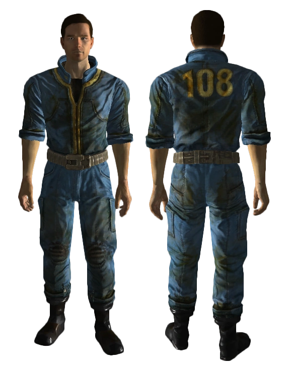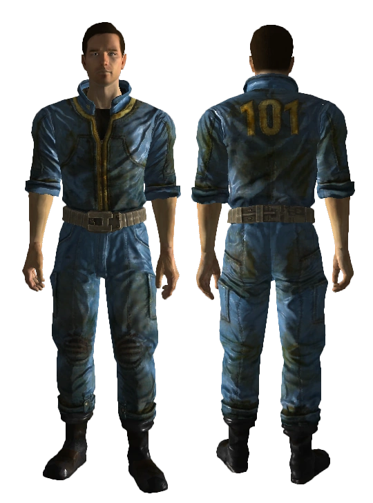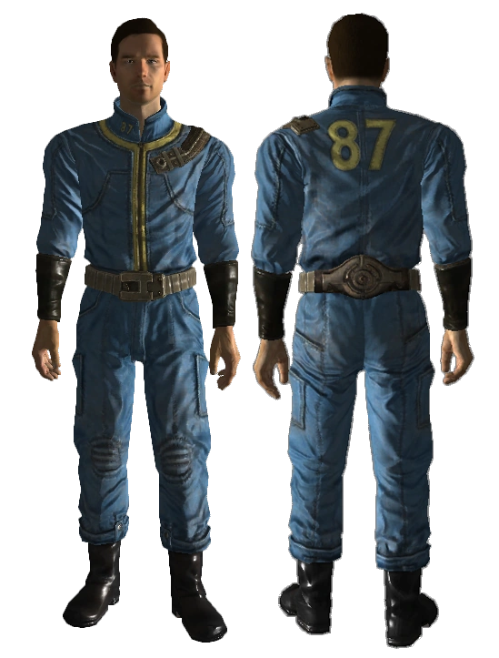 Worn by the Lone Wanderer at the beginning of the game, and by other inhabitants of Vault 101. Children wear a different variant; see the next entry. |