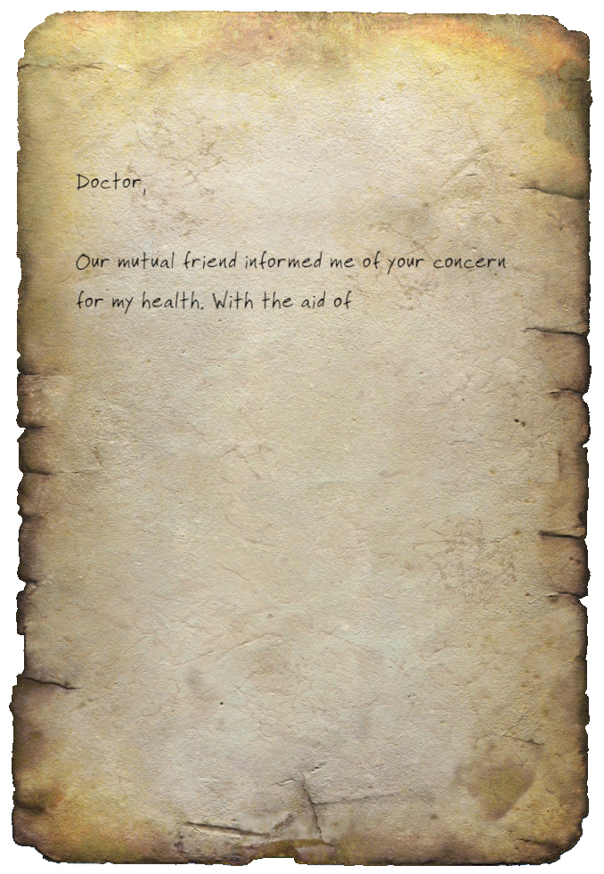 Our mutual friend informed me of your concern for my health. With the aid of <Alias.PronounPosObj=Player>, I was able to secure an antidote for my condition, and am pleased to report that I have made a full recovery.