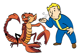 | Radscorpion | "Nice giant scorpion..." | *Insect Clicking* "Attack!" | *Insect Clicking* "You ready?" |
