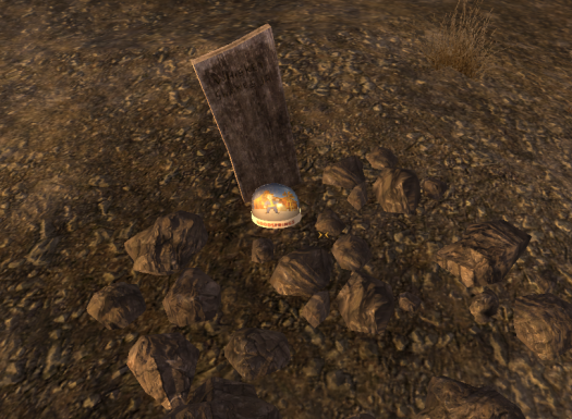 His grave can be found in the Goodsprings Cemetery. The Courier can find the Goodsprings snow globe sitting in front of the marker.