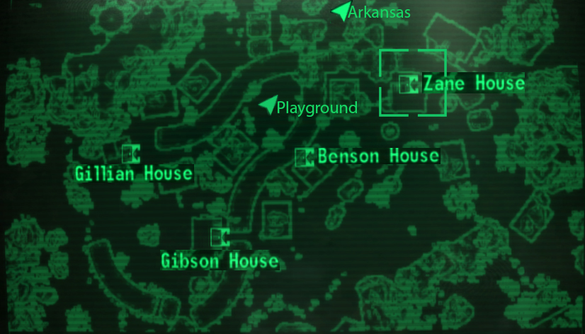 The Zane house is one of the buildings in Minefield, alongside the Benson house, Gibson house and Gillian house.
