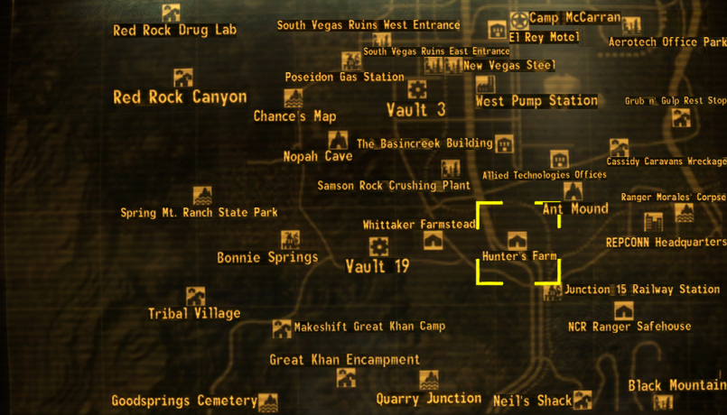 Hunter's farm is a location in the Mojave Wasteland, located south-west of Allied Technologies offices.