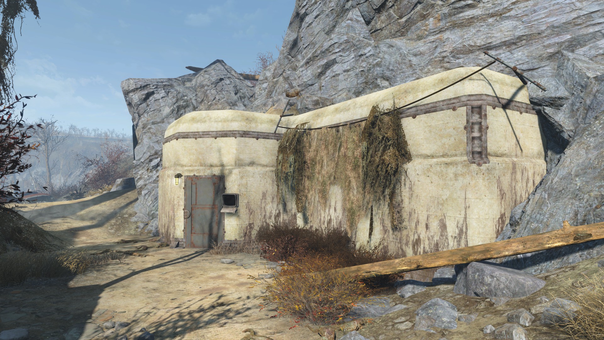 At the top of the hill to the east of the bunker is a cooking station with two sleeping bags. When arriving, one will be ambushed by two radscorpions.