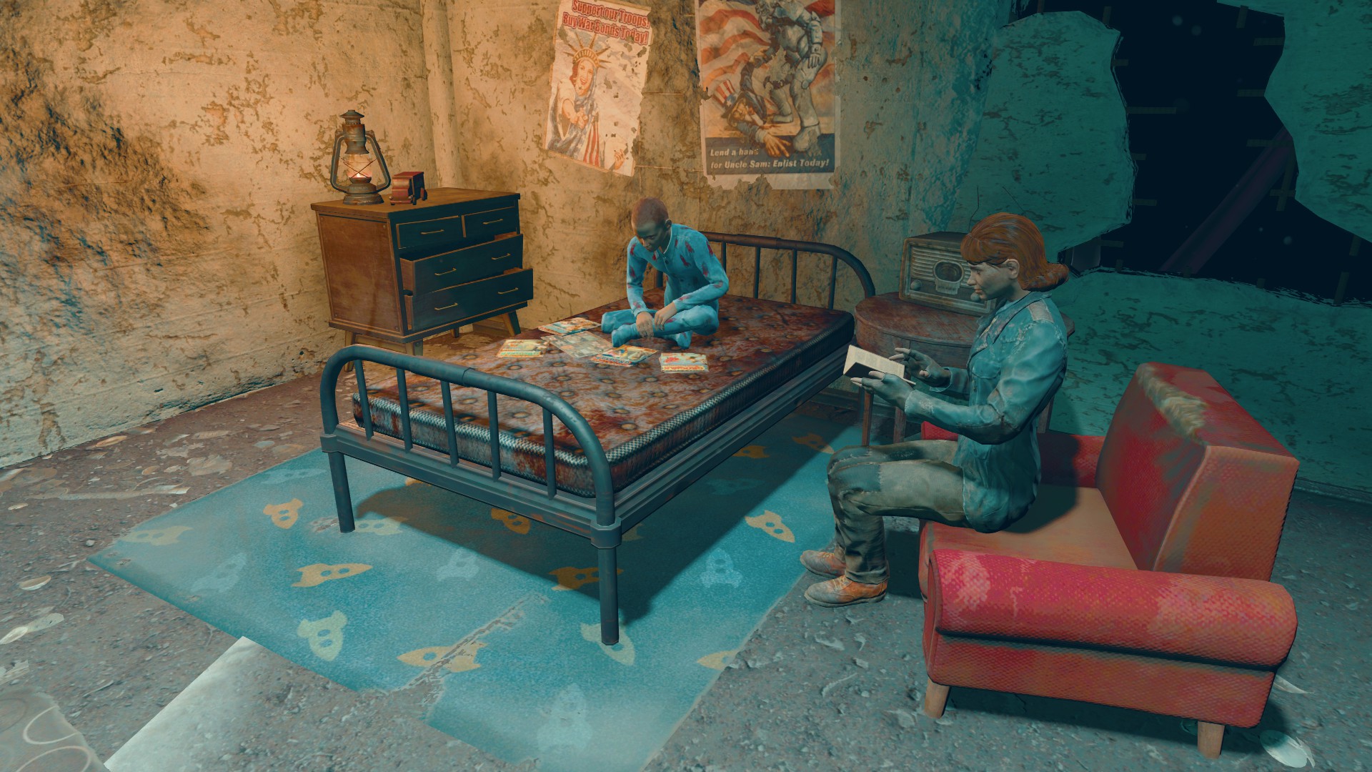The first three lines are clearly audible, with the remainder behind conversation. The last seven lines of audio loop continuously until the Sole Survivor progresses to the next memory sequence.