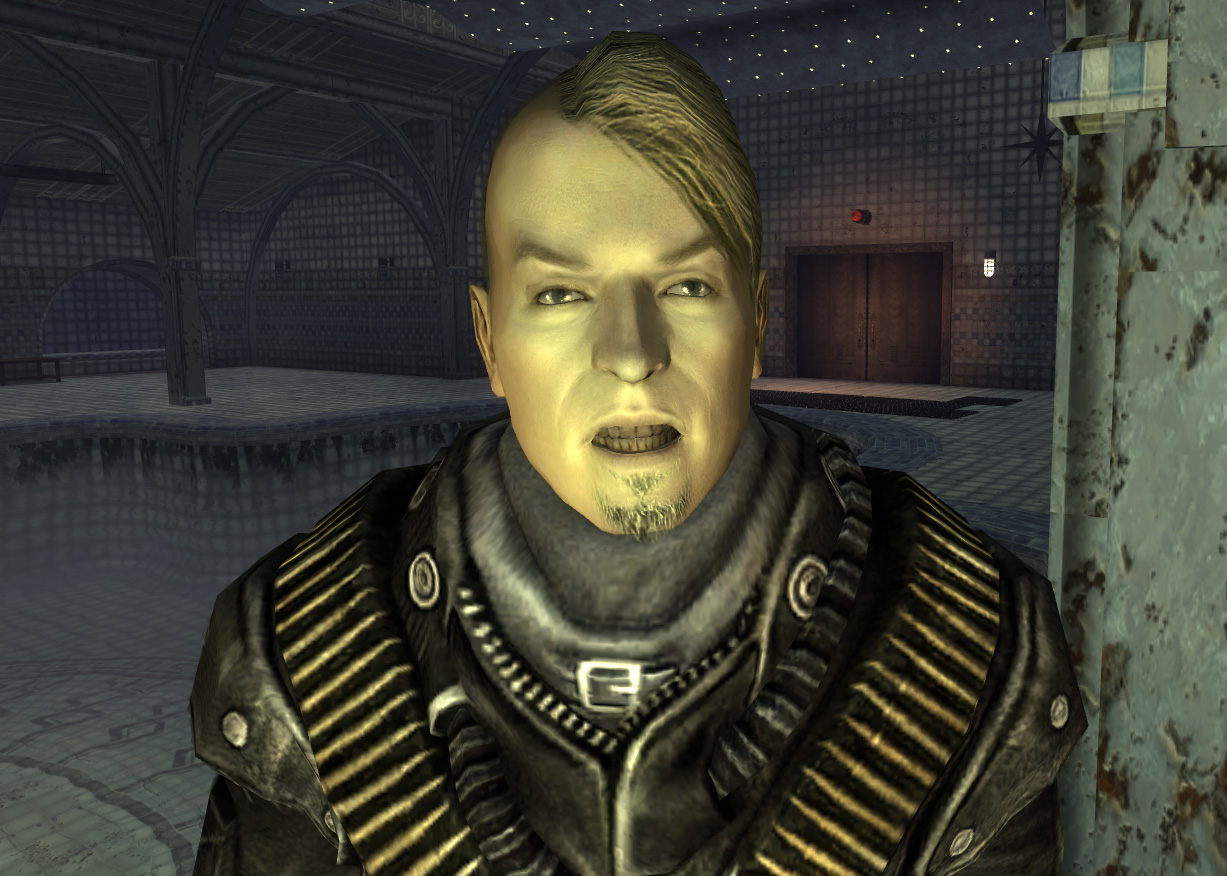 The assassin can be seen in a small room below the steam room. He can be seen in this room by using the noclip tcl console command for a closer look. He can also be found on the Xbox by going through a wall which is to the right after entering the room. After crossing the corner, go straight and one will end up a shady area. One will see a room for a short while, then fall and end back up in the place they started. It is possible to get there too, by making a leap of faith. Talking to the assassin will result in the player character only "looking" at him for a split second, then going back to normal. This is because the assassin uses an empty voice type. If he is killed, Chauncey also dies.