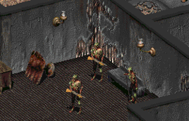 Garret can be talked to, but he will barely interact with the Vault Dweller, referring them to Set in the evening. The only other thing Garret will do is give them a reward for the super mutant elimination task given by Set, the reward is based on how much Garret likes the Dweller. This is determined by the Charisma and positive Reputation. To establish a reaction, one has to talk to Garret between 7:00 and 18:00.