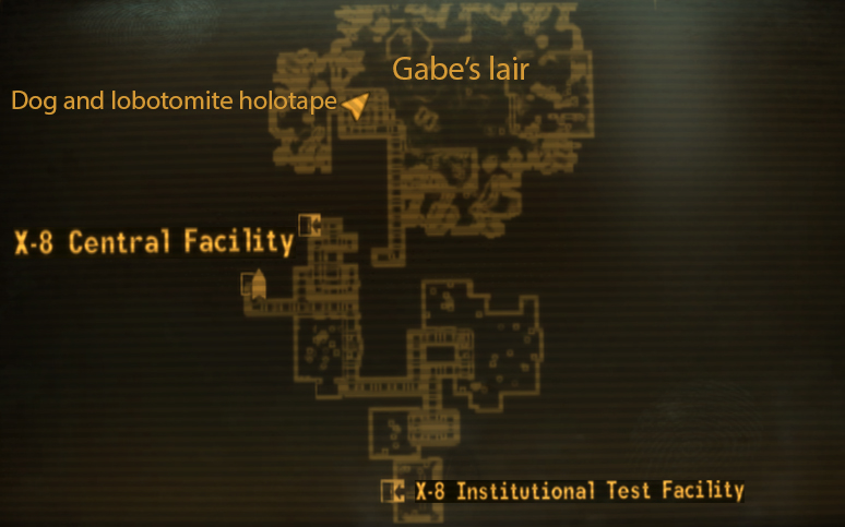 - A Brain's Best Friend: Gabe does not need putting down before talking to Borous about it. Killing Gabe can be avoided by running or sneaking past him and digging up the holodisk with Gabe's bark on it (which is placed in a random dig site.) Doctor Mobius' robotic scorpions will appear and proceed to kill Gabe, however, he can be saved if one moves quickly, either by killing the scorpions or by simply leaving the area before Gabe is killed. Borous will thank the Courier for saving Gabe, but there does not appear to be any reward.