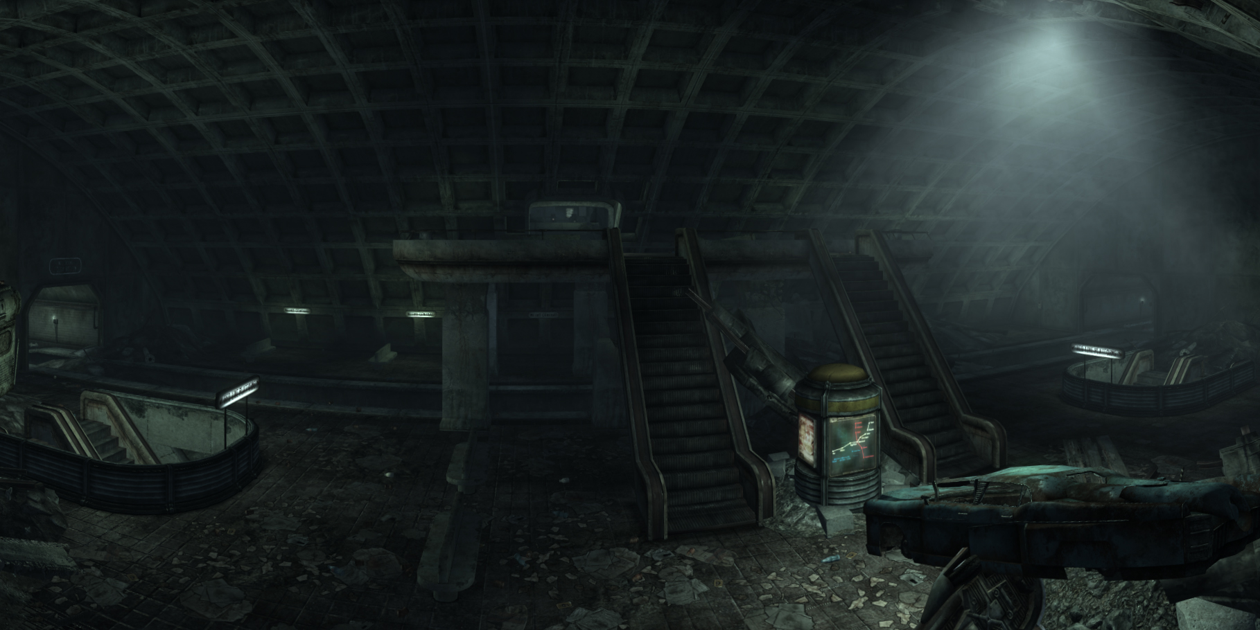 地铁中心曾经是华盛顿地铁的主要枢纽,东西方向的红线和南北方向的白线在这里交汇。虽然地铁已经有200年没有运行了,但隧道仍然是华盛顿地区快速通行的便捷方式。由于其战略重要性,它一直是掠夺者,鷹爪組織和狂屍鬼之间的几次小规模冲突的战场。这些小规模冲突的后果是,上述派系的几名成员的尸体散落在车站周围,两个路障仍然屹立不倒。其中一个位于通往霧谷站的服务通道的尽头,以前由鷹爪組織控制,被狂屍鬼完全占领;另一个是通往杜邦圓環站的北向服务通道,仍然由仅有的两名掠夺者幸存者操纵。