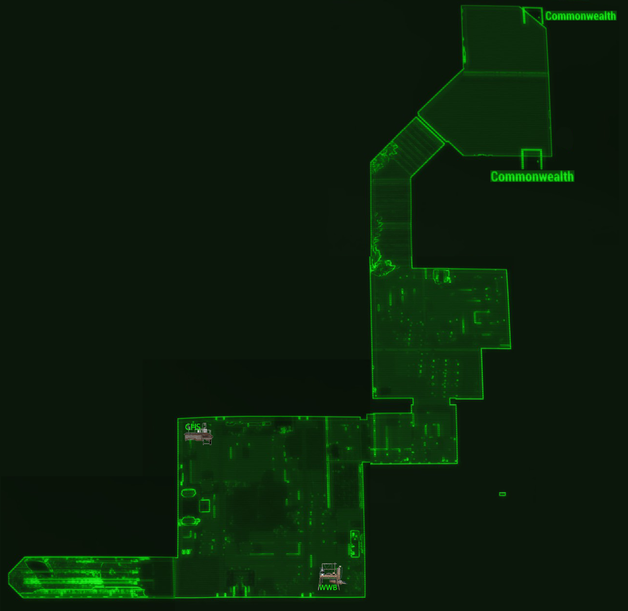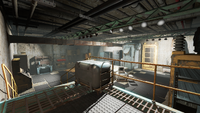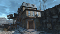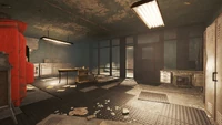The building once served as a bank for the staff and students of Massachusetts Bay University, with a robust security system including heavy-duty bank vault doors. In 2077, the bank was selected as the site of Professor Stuart Campbell's lab. The vault was expanded to include an adjacent research and prototyping laboratory, with a separate access corridor through the parking lot next to the university. The main exit collapsed in the wake of the Great War, leaving only the bank vault as an escape route.