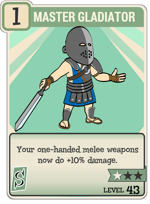 - All ranks of Gladiator, as well as the first rank of Expert Gladiator and Master Gladiator, increase damage by +10%, while subsequent ranks only increase damage by +5%. Therefore, if interested in getting the maximum damage increase from these perks at the minimum perk point cost, all ranks of Gladiator and the first ranks of Expert and Master Gladiator should be taken before taking the later ranks of Expert and Master Gladiator.