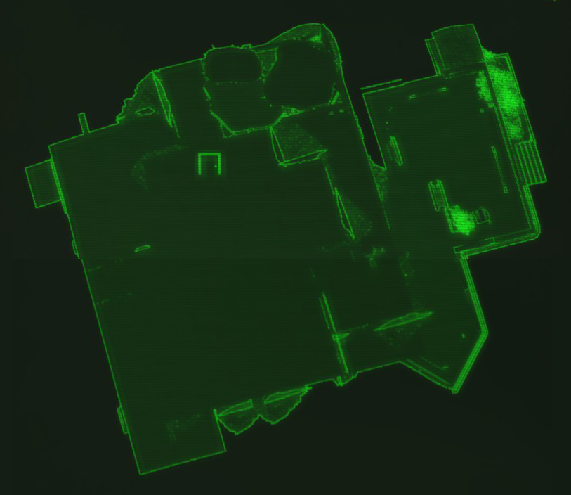 The second floor is accessible by walking up the hill around the building and entering through the hole underneath the "Atlantic Offices" sign. The elevator shaft is accessible here, and there are several holes in the floor that lead to the main level. There is a room with a locked security door here that is controlled from a nearby terminal.
