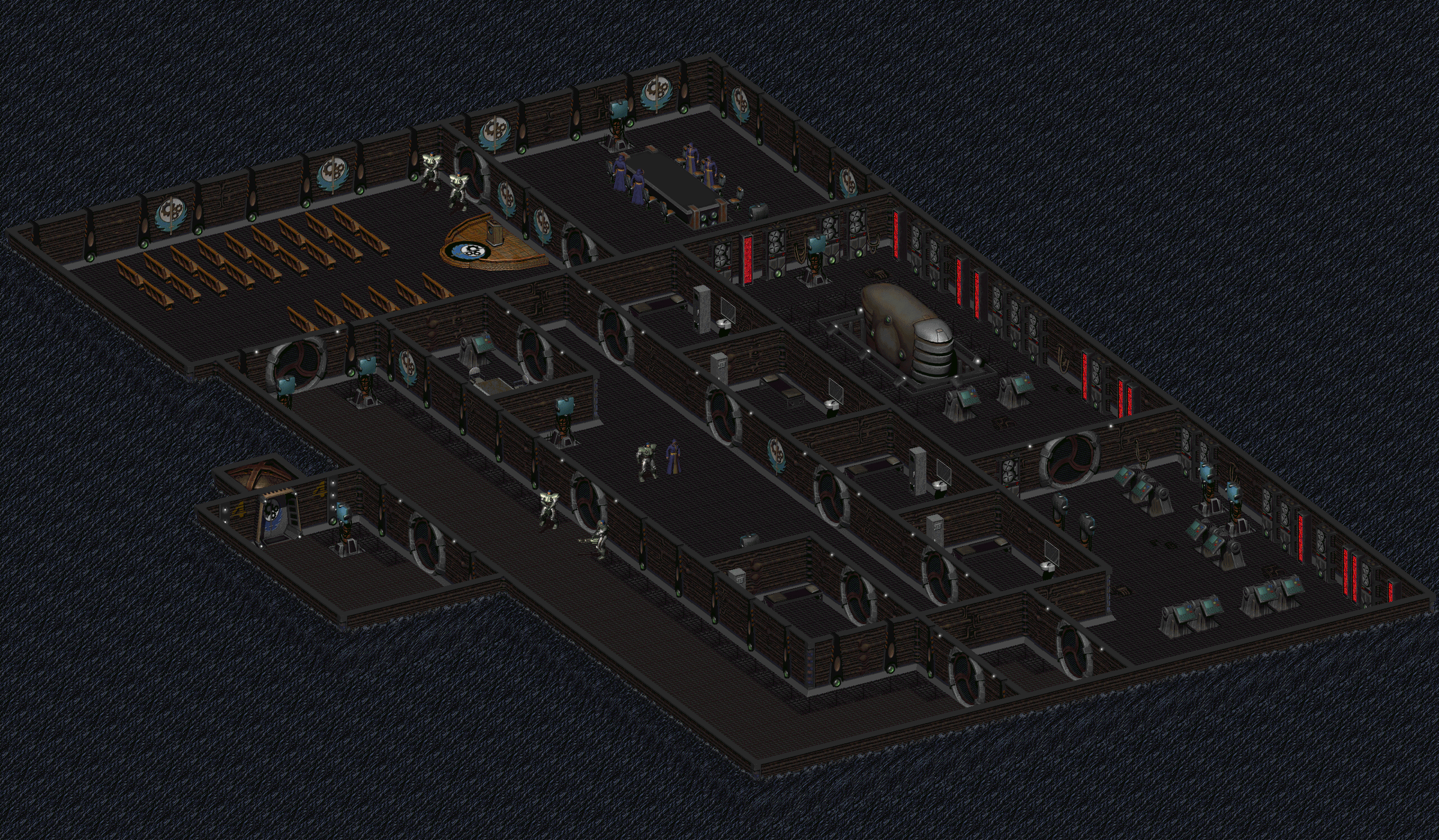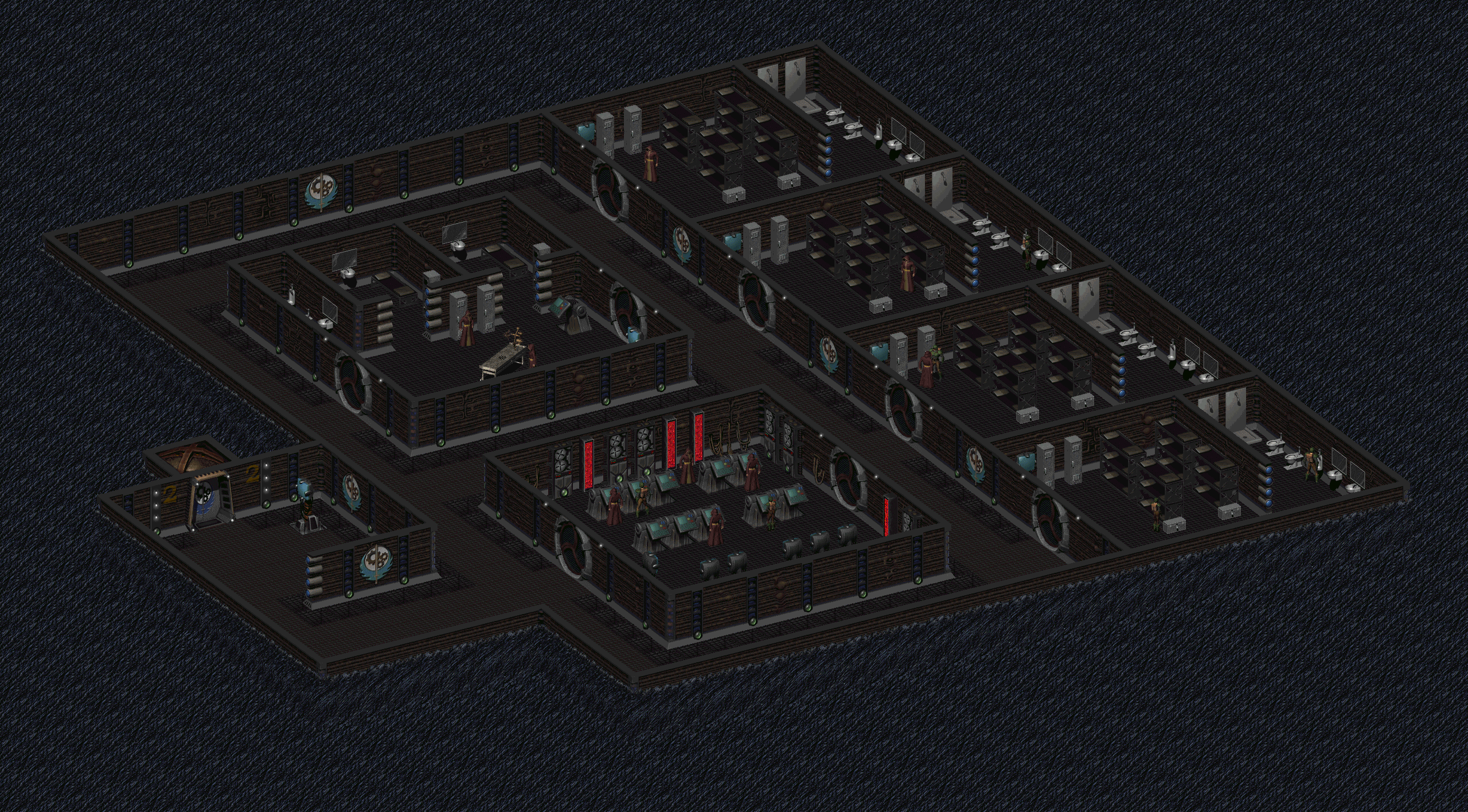 包含兄弟会集体知识的大型机、处理和存储设备位于偏僻的宿舍后面,可通过气闸进入。这里没有人看守,不像长老宿舍和会议室。