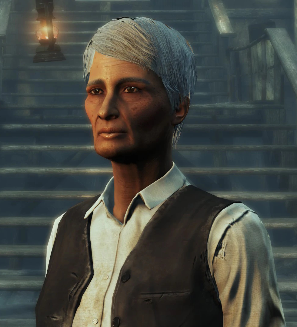 She has been a permanent resident of Far Harbor since approximately 2279,[4] eventually becoming captain of the Harbormen. She is accepted among her peers,[5] and Mitch points out her moral superiority by calling her "holier than thou," albeit in a slightly mocking tone.[6]