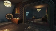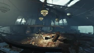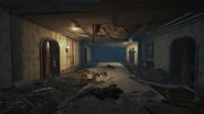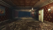The hotel consists of four floors and a basement, the latter of which can be accessed via the only working elevator, guarded by ceiling-mounted turret, and descends into Vault 118. At the main reception desk on the ground floor, there is a working terminal that can be accessed to read a pre-War entry.