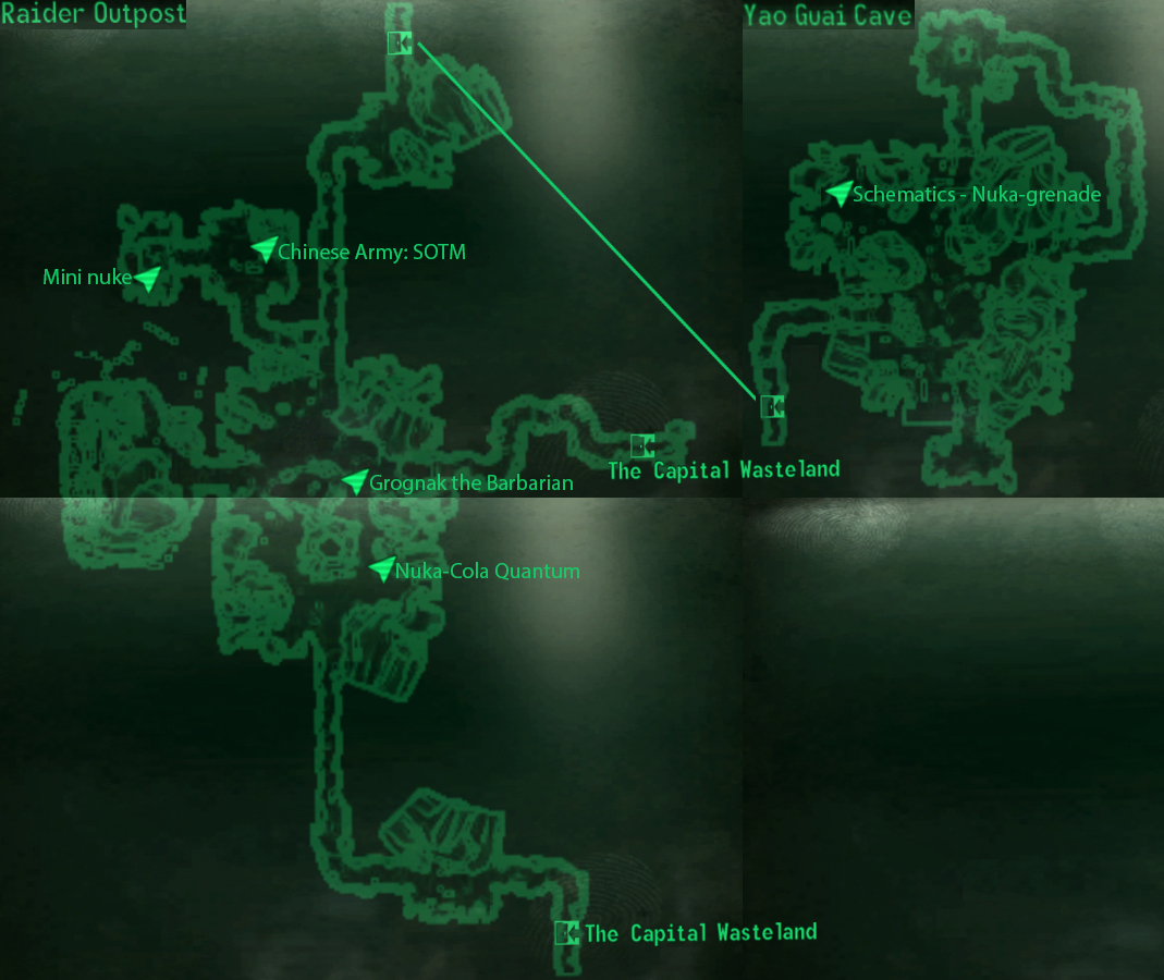 崖邊洞穴作為土匪在首都廢墟南部的哨站。然而,土匪發現他們並非洞穴里的唯一居民,所以著手在妖怪洞穴入口前鋪設地雷。