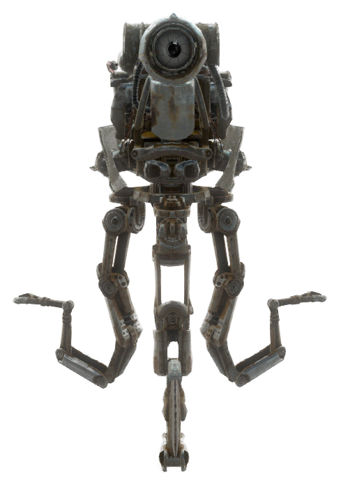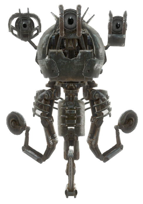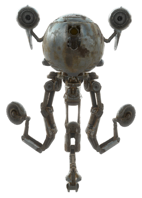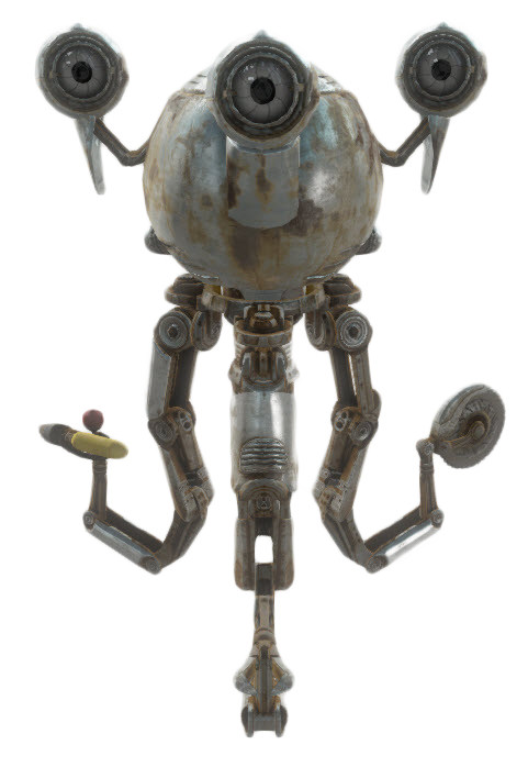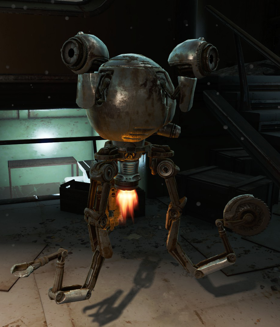Like feral ghouls and other robots in the Commonwealth, the limbs of Mister Handies can fall off or otherwise break when they take damage. This is also true for Mister Gutsies. Codsworth and Curie are immune to this mechanic due to their status as companions. Mister Handies can sometimes spawn in a state of disrepair, with one or more of their limbs or chassis panels missing.