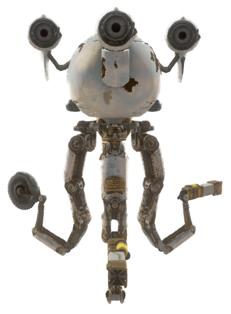 The Mister Handy wrecker is a hostile version of the Mister Handy. Usually seen fighting together with Rust Devils this robot can be a dangerous foe if paired with other robots.