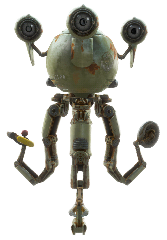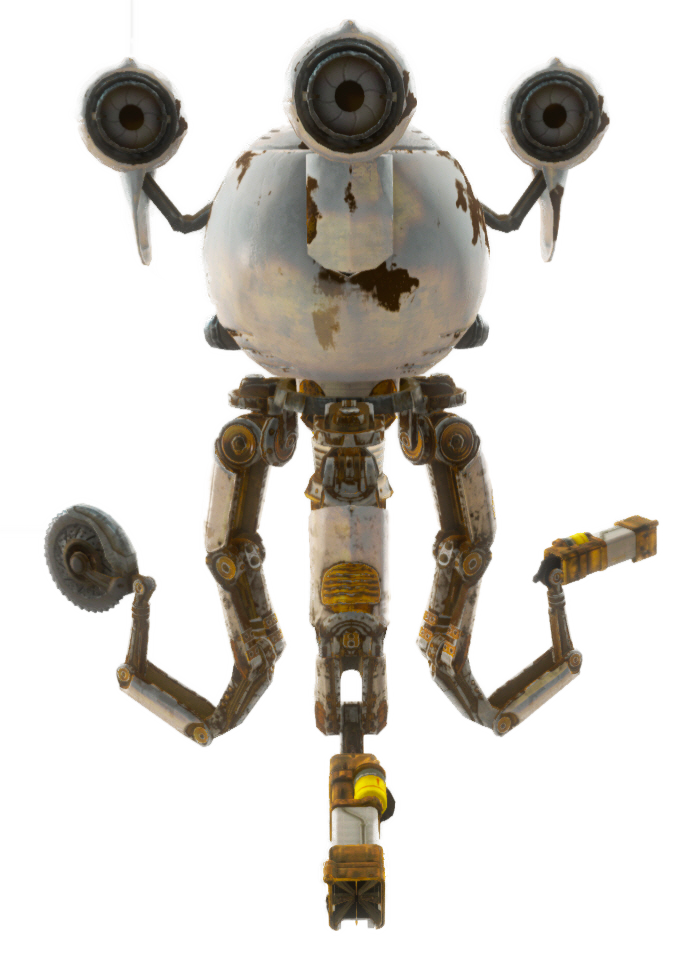 Unlike the previous versions, the Commonwealth variants have several different weapon configurations installed, including but not limited to automatic weapon and laser weapon mounts. Their bodies, eyes, arms can now be broken in combat. The words "Mister Handy" are written on the backside of their body.