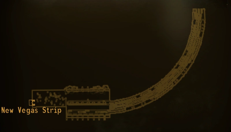 ↑Fallout: New Vegas Official Game Guide Collector's Edition p. 343: "[2D.03] Vegas Boulevard Station The LVB, or Las Vegas Boulevard Station offers a monorail service between here and Camp McCarran [2.19]. This is mainly for the benefit of NCR citizens and military. Processing Office A Securitron Mk I is here to make sure you don't loiter (and to maintain a tense, but professional relationship with the NCR). Head further in and an NCR Trooper warns you that most weapons are banned by Mr. House when entering casinos. You can also speak to the Trooper about the Casinos, and other fun times to be had on The Strip, if it's your first time here." (Fallout: New Vegas Official Game Guide Collector's Edition Tour of the Mojave Wasteland)