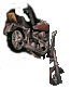 A motorcycle is a two-wheeled motor vehicle, the derelict remains of which litter the wastelands.