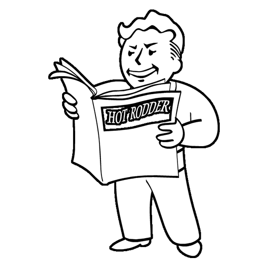Hot Rodder is a pre-War magazine for automotive enthusiasts. By reading the Hot Rodder magazine, the Sole Survivor is able to unlock a new custom paint job for power armor. There are three Hot Rodder magazine paint jobs (four with Creation Club); all of them grant a +1 Agility bonus when painted on a full set of power armor: