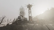 The Sludge Works take its name from the pumping machines that surround a filthy pond. Arranged in a semi-circle with an outward-facing defensive wall, the location is well fortified, with a locked safe and Beckett's belongings on the northern end, and minor raider-themed loot scattered throughout.