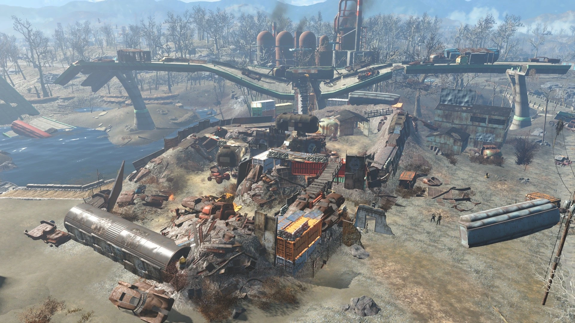 By 2287, the remains of the junkyard and the adjacent elevated freeway have been turned into a Gunners outpost.