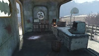 Stepping on the ground floor will trigger the spawning of several mole rats, including a brood mother. A temporary office with a terminal can be found on the lot as well. In the utility tunnels, there is a chemistry station and a power armor station .