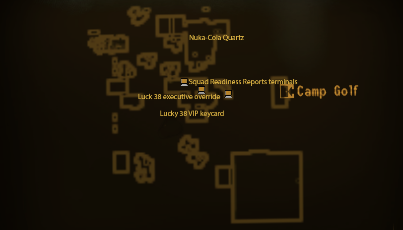 - The "Lucky 38 Executive Override" option on the terminal in the office was originally supposed to be part of The Moon Comes Over the Tower, but that section of the quest was cut from the final release.