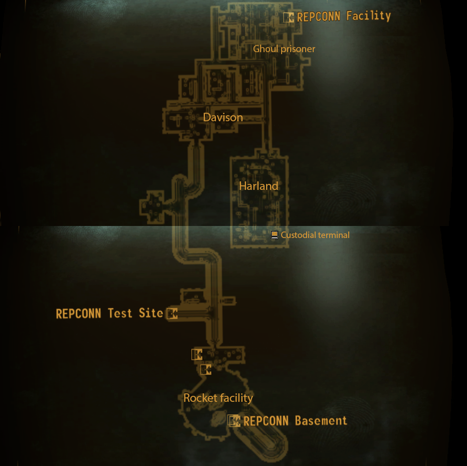這是一個舊瑞普康(REPCONN:內華達火箭引擎製造公司Rocket Engineering Production Company of Nevada)試驗場, along with its landmark rocket launch dome, have sat idle over the years, and are now home to Feral Ghouls who come to terrorize the inhabitants of nearby Novac. However, within the facility, there's a prolonged stalemate going on between a band of Nightkin, devolved from Marcus' forces up at Jacobstown and lead by a deranged man-mountain named Davison. They are attempting to locate shipments of Stealth Boys. The ghouls are led by an intelligent, messianic glowing ghoul who dreams of escaping with his followers in the plant's remaining rockets.[1]