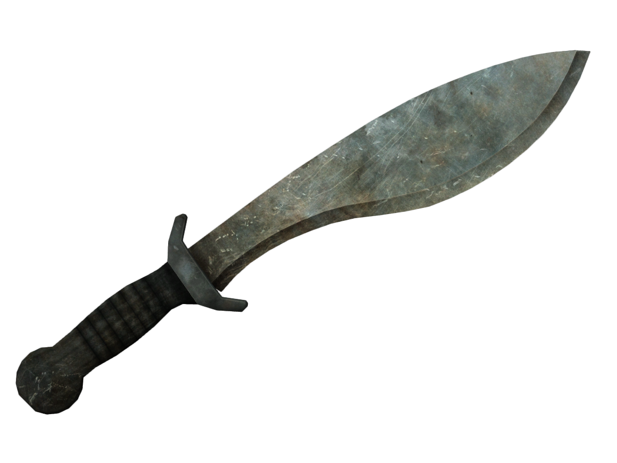 A short, broad-bladed machete. 比起批量裝備的砍刀,這把刀顯然屬於比較正統的武器。