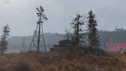 This two-story wooden shack sits out in the open, with some makeshift walls along its perimeter. A couple of radioactive barrels sit outside. There are multiple entrances to the first floor of the shack, which has numerous shelves filled with junk items, as well as an armor workbench, a cooking station and a weapons workbench. Upstairs, one can access a balcony where there is a locked refrigerator with a possible vial of Daddy-O inside.