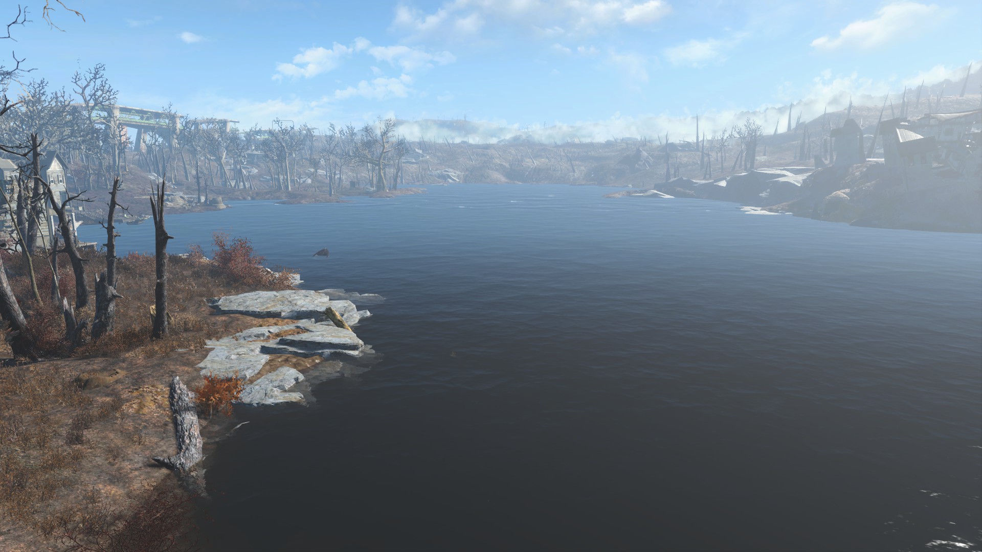 ↑Fallout 4 Vault Dweller's Survival Guide p. 355: "This was once a great fishing and recreation spot, until the contamination from the nearby disposal site shut down these activities. Now the lake stretches from the elevated freeway and Poseidon Reservoir area south by Natick to the devastated Mass Fusion Disposal Site to the south."