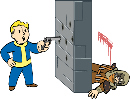 “没有地方可躲!这并不允许射击穿透坚不可摧的墙壁,但允许你瞄准部分模糊的敌人(如树后、窗户后或路障后的敌人),假如他们的部分可见。这是进一步增强V.A.T.S.战斗的另一个好选择。”— 辐射4 避难所居民的生存指南描述