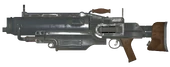 这是一把高火力and a comparatively low spread的全自动武器,它配用5mm弹药以及24发弹匣。It is very accurate for an automatic weapon and highly effective against medium or heavily armored targets.