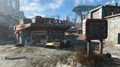 - 大型的红火箭站不只是普通的自动售货机,还包括完整的便利店,里面有当地和国家品牌,包括核子可乐软饮料、冰沙、旅游小册子和Grey Tortoise香烟。[10][11][12]这些设施提供洗车服务,通常还附带加油,还有全天候开放的全自动餐车,提供汉堡等食物,这些食物由生物工程材料制成,比例精确,烤牛肉完美无瑕。[13][14][15][Atomic Shop 7]客户可以选择由站点服务员提供全面服务、自助服务或自动服务,同时机器人提供洗车服务。[16]