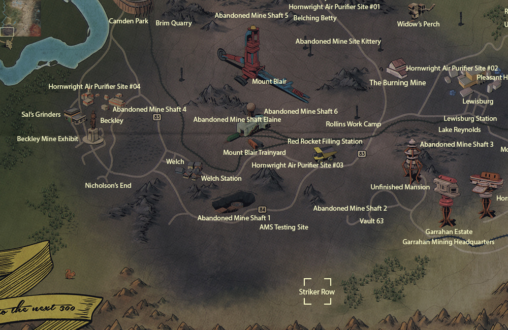 Striker Row is a location in the Ash Heap region of Appalachia in 2102.