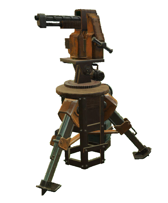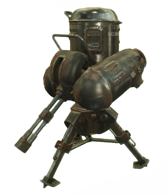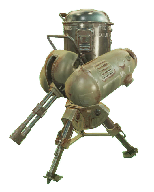 A simple turret found in many pre-war locations, machinegun turrets commonly have low damage and high spread.