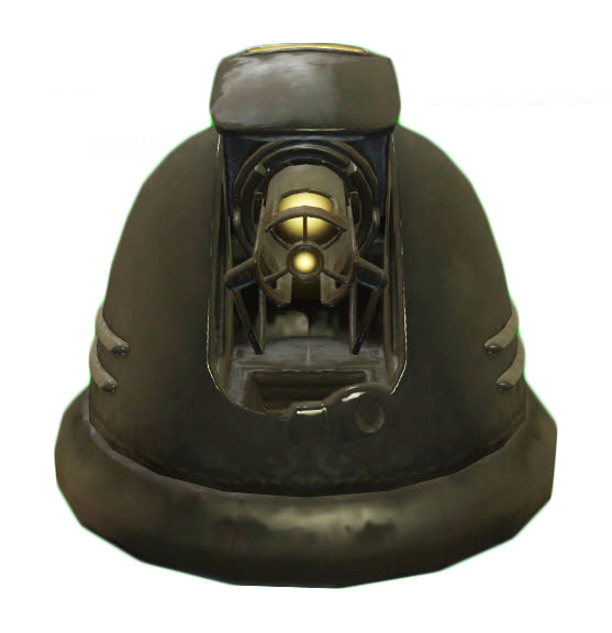 One of the most common turrets found throughout the Commonwealth, these were used in many security systems in places such as vaults, corporate buildings and military installations. When hostile they will attack targets with a single laser repetitively, much like a laser rifle.