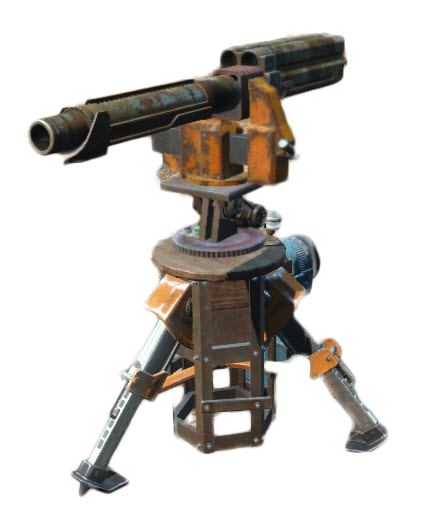 Turret armed with a quad-barreled missile launcher. Extremely powerful due to its explosive ordnance and will take out even vertibirds with ease. Care must be taken for their placement however, since stray missiles may accidentally knock out generators or other turrets and may even kill the player character.